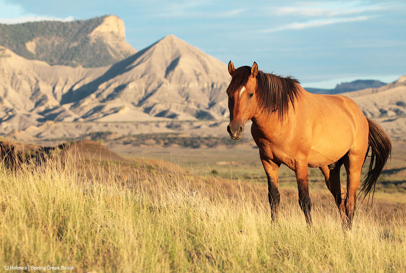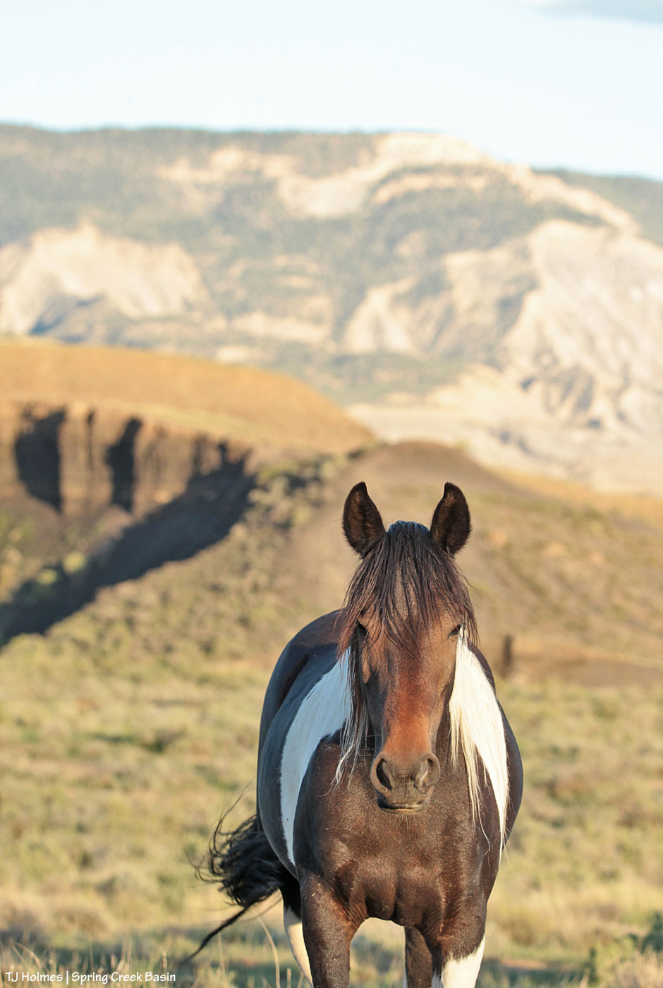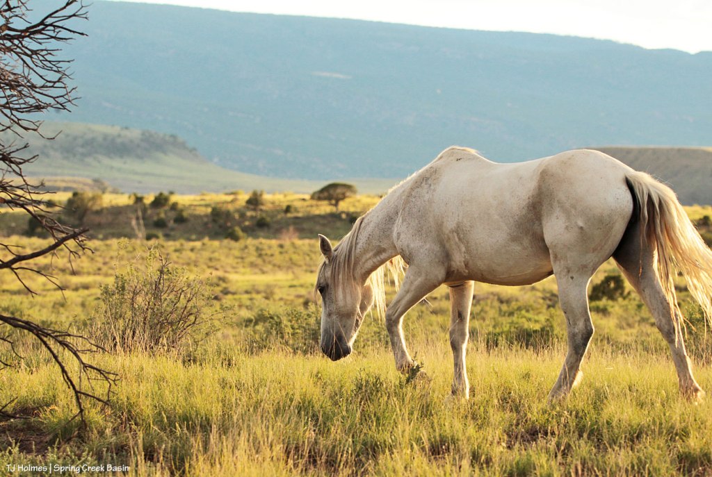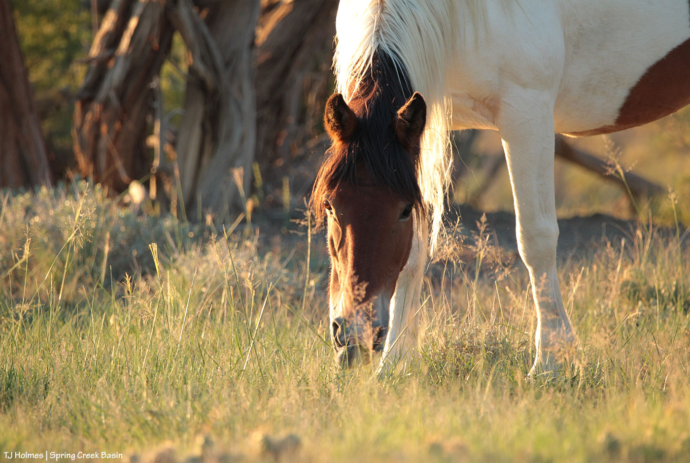 Chipeta likes to help illustrate the yummy green grass. This particular area of Spring Creek Basin is thick with alkali sacatone/sand dropseed. I love the squeaks these particular types of grasses make as the horses graze. It’s the sound of *plenty*.
