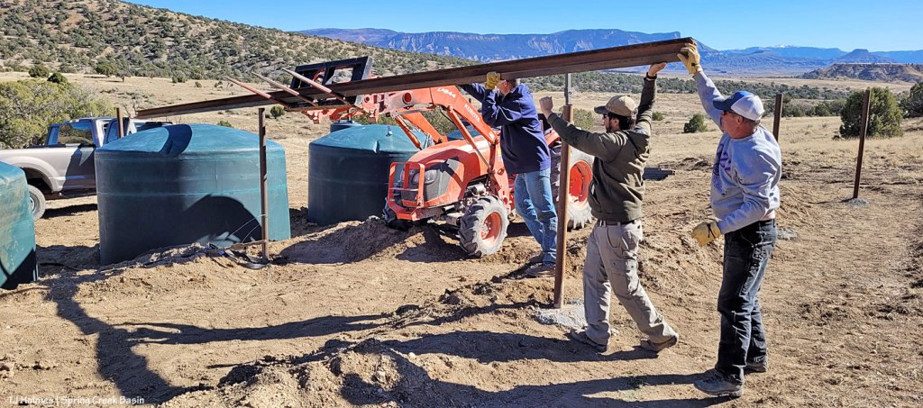 Work resumed this week on the water catchment in Spring Creek Basin’s northwest valley. We were ahead of the snow that came Wednesday, and although we had an absolutely beautiful day, it was windy. We joked that Wyomingites would consider it merely *breezy*. We did gratefully note that there were no gnats. 😉 By Wednesday (and even Tuesday afternoon as we left the basin), I thought maybe we shouldn’t have joked about the wind, as it got *really* strong. … But … no gnats. There’s always a silver lining!