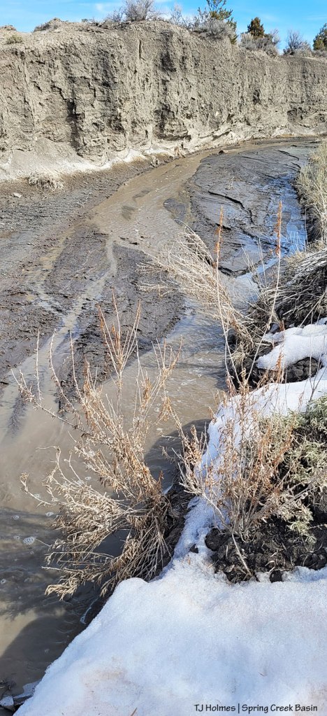 There are still patches of snow in shady places and high (elevation) places, and all that snow is giving way to little creeks and streams in the arroyos. Spring is on the way!
