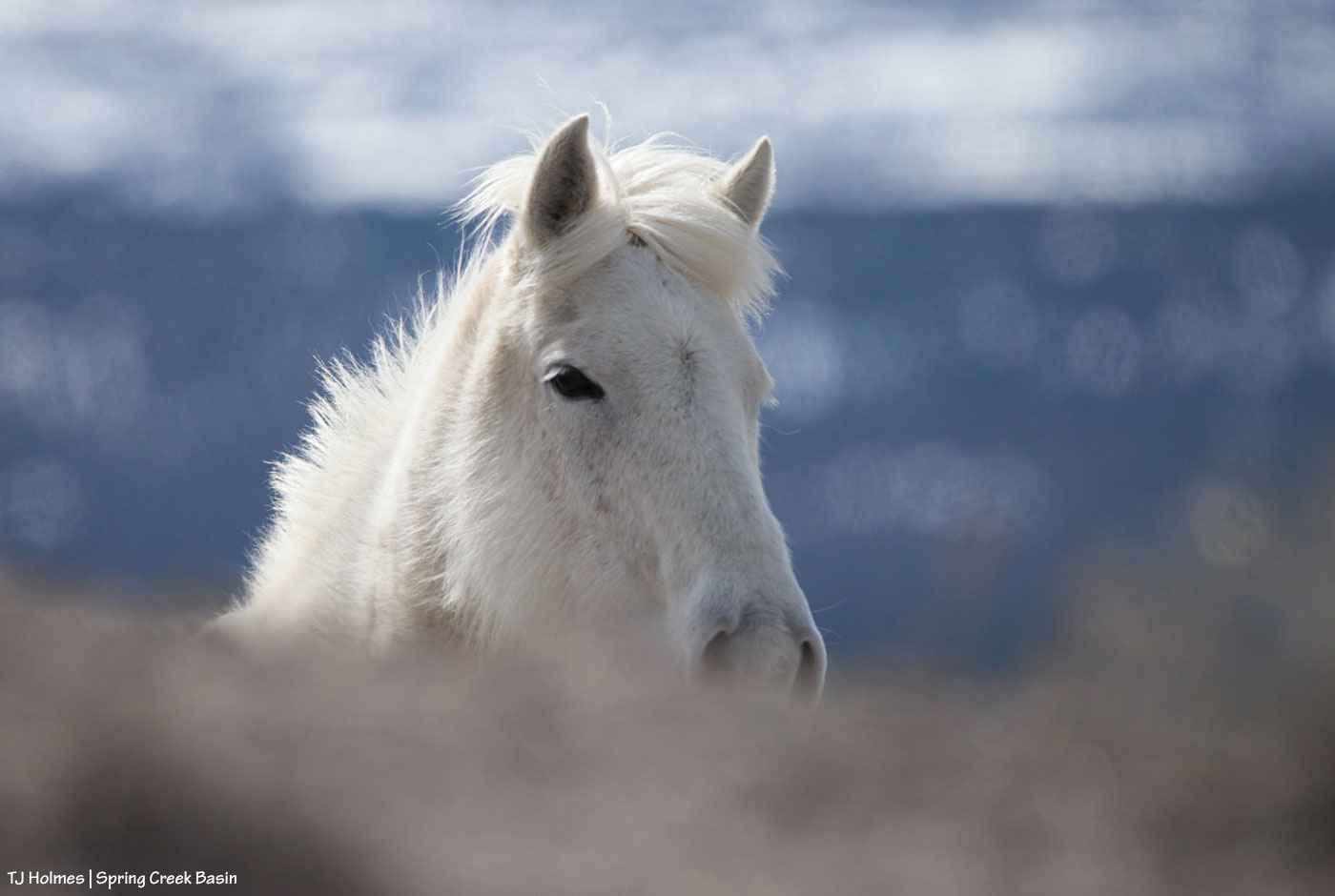 Patches of snow on the far southern ridge is responsible for the pretty bokeh in the background. Like magic fairy lights around the pretty mustang girl. š