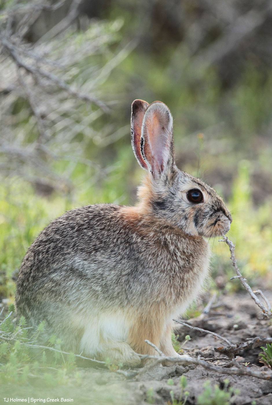 And to end on a fluffy note, here’s little Peter or Petra cottontail. This little critter was much closer to the horses I was with and also moseying along among the greening greasewood.