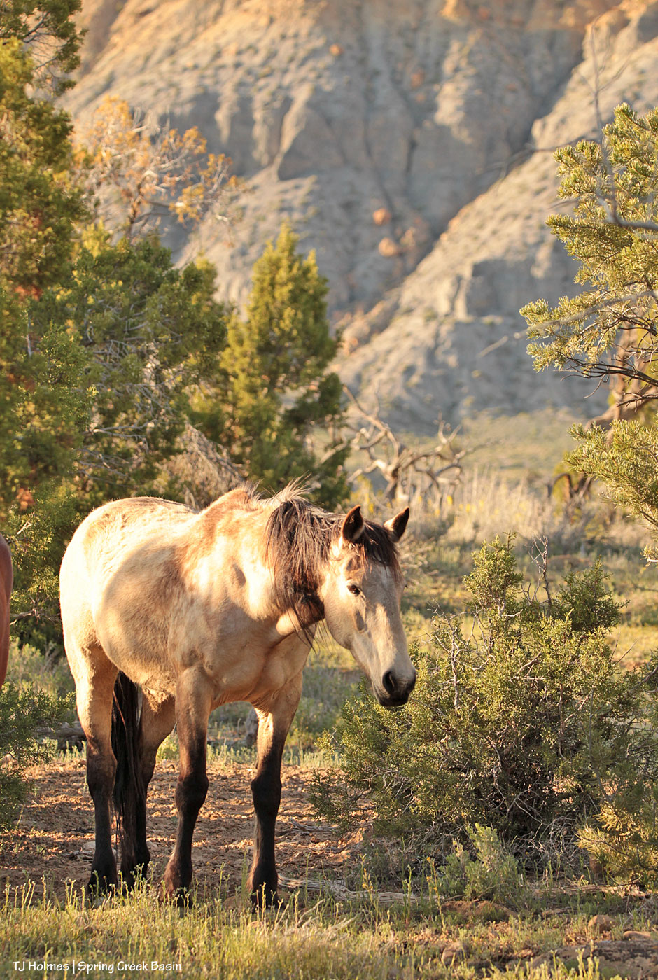 OK, it’s really not that secret; it’s a narrow little forested strip on top of one of the lower ridges. I adore any pix I’m able to get of the mustangs in a treed setting because it’s so rare to find them in a treed setting! It does sometimes make them a bit hard to spot (yay for the greys!).