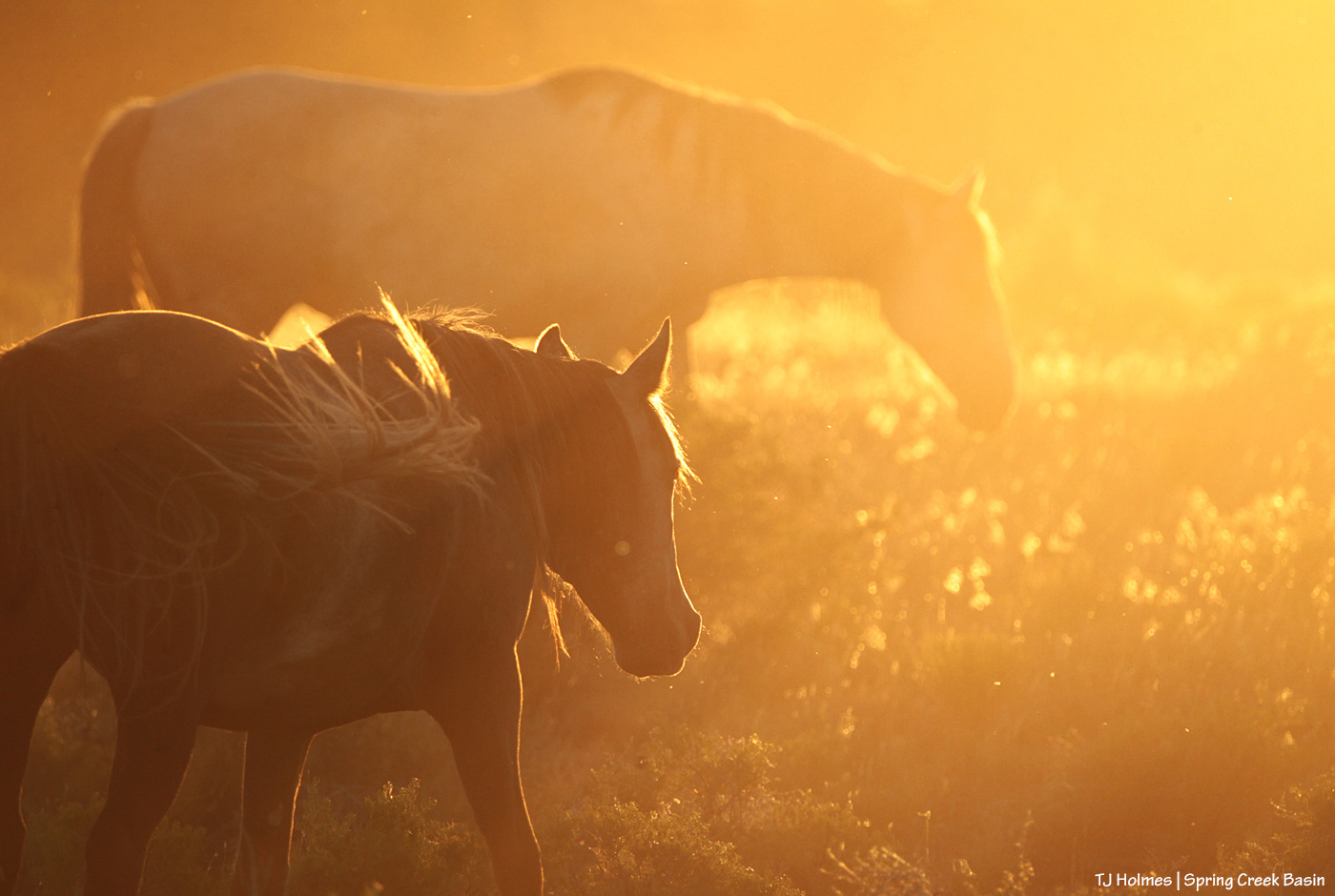 In good news, the mustangs are doing quite well, even down to one pond of water and scattered seeps in arroyo bottoms, because our excellent BLM folks have had the foresight to scatter water catchments throughout Spring Creek Basin. Humans worry; wild horses don’t.