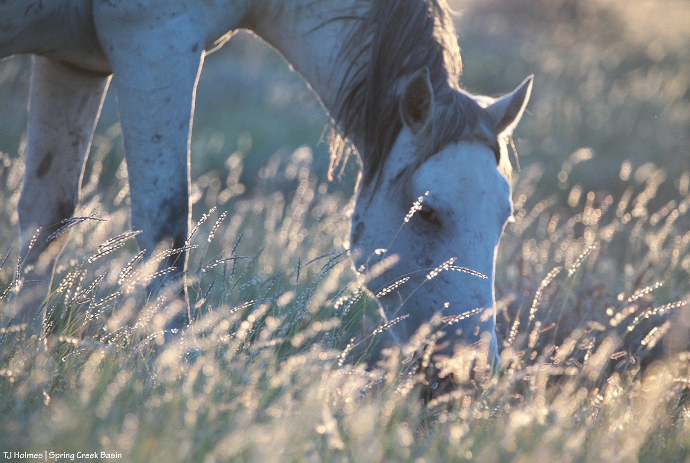 Galleta (mostly) and grama (some) glow against the evening light while Skywalker grazes.