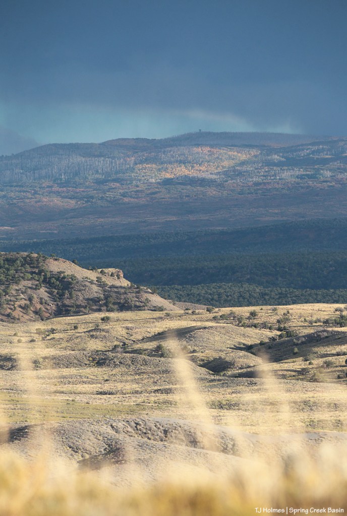 A crazy ol’ wind blew in some stormy weather above Disappointment Valley on Saturday. Our biggest color change down here in the lower valley so far is flowering rabbitbrush and snake weed. But lookie: Up high, the aspen are going gold.