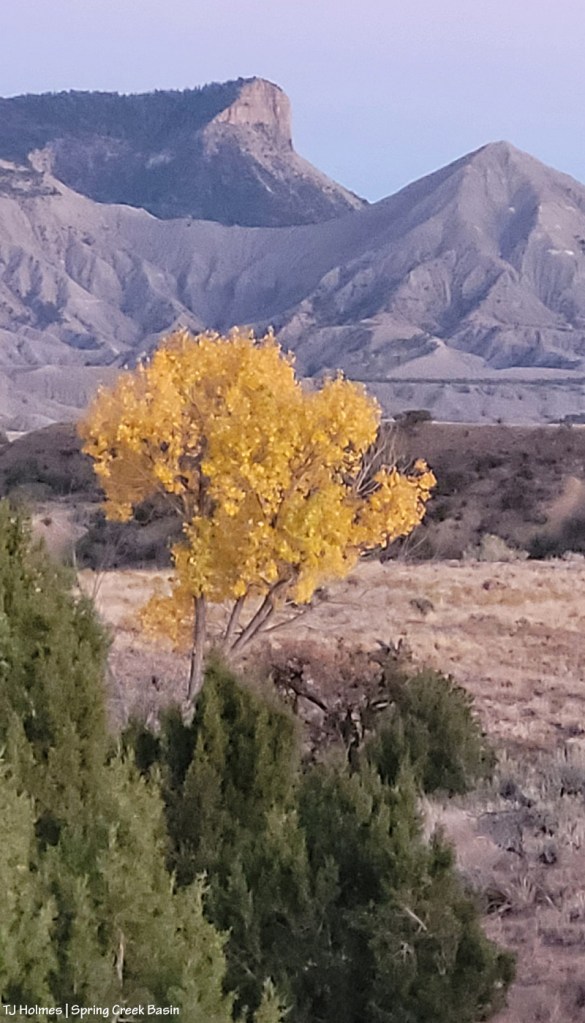 None of the horses have cooperated in posing nicely by this lone cottonwood in Spring Creek Basin, but it was too pretty to ignore and not share!