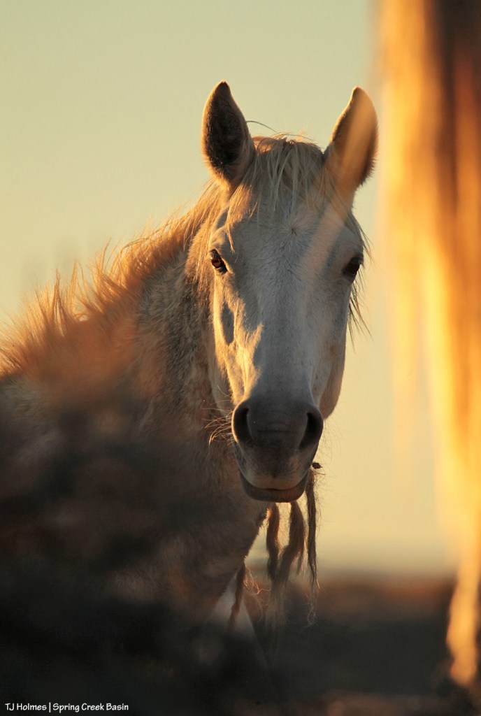 So-pretty Maia, lit on one side by the setting sun and framed on the other side by the glowing cascade of tail-hair of a bandmate. … A simple moment in time. Gorgeous.