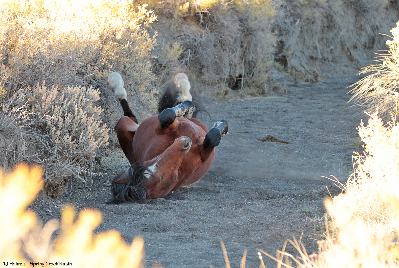He heaved over into a mighty, wriggly, hopefully satisfying roll but couldn’t go all the way over because of the short bank of the arroyo nearby.