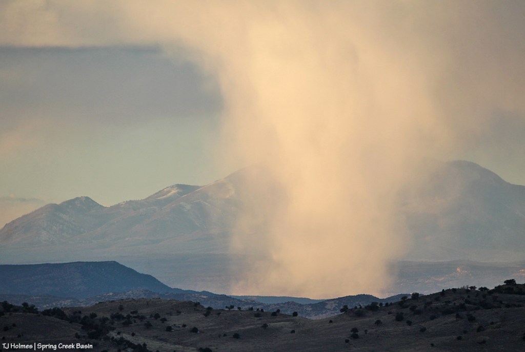 Later, very just most immediately before sunset shuttered the light on the rimrocks above Spring Creek canyon, the snow had passed, but the light was still gorgeous.