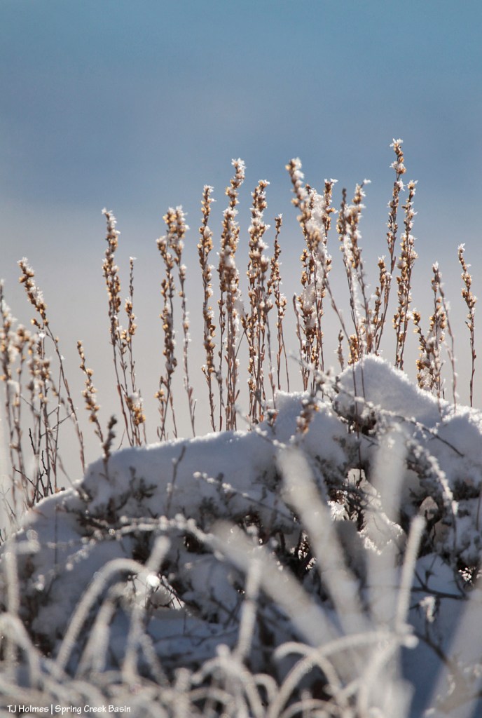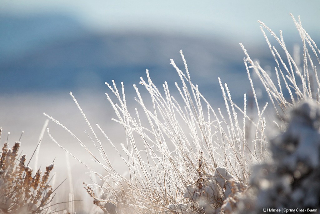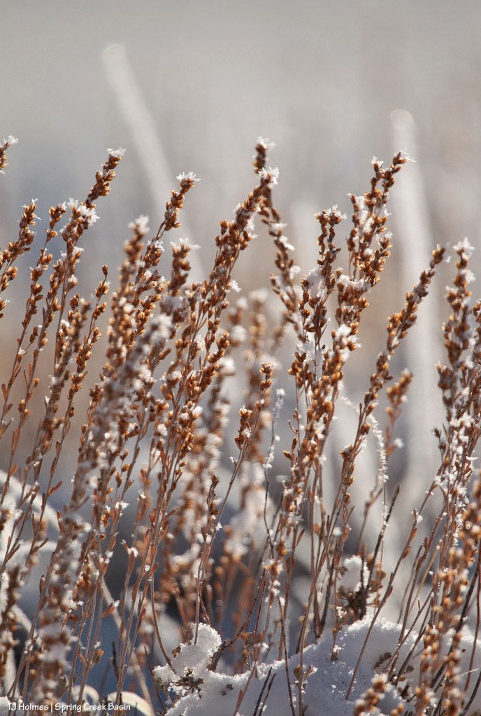 The following pix are of snow/ice crystals on grass stalks and sagebrush in Spring Creek Basin on Friday.