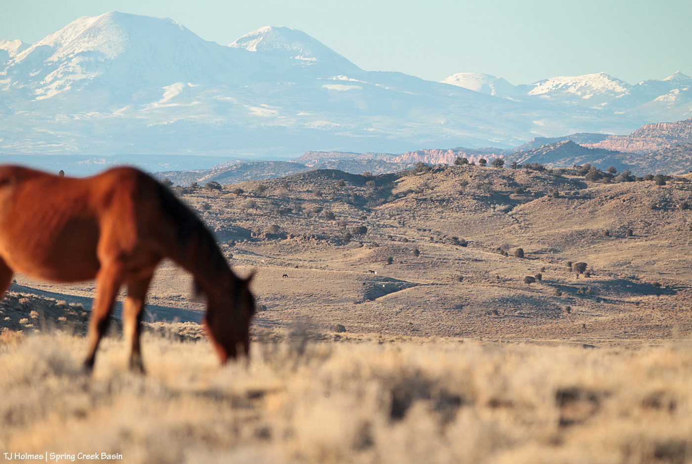 It’s not the first time I’ve seen horses up there, but it’s the first time I was in position to hustle down to the canyon to hike up to the top of the canyon. Unfortunately, by the time I’d hustled up, they’d moseyed down. The view wasn’t nearly as grand from the bowl as from the top of the rimrock-bound canyon.
