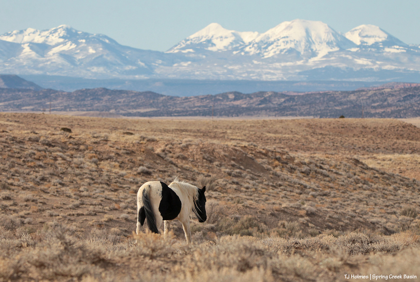 In very good news, we got half an inch of nicely wet snow yesterday morning. In other news, our view didn’t change much from the above-pictured visit with Corazon, taken a couple of days ago, because the snow melted very quickly. In fact, by afternoon, with sunshine and continuously howling winds, the ground and roads were dry again.