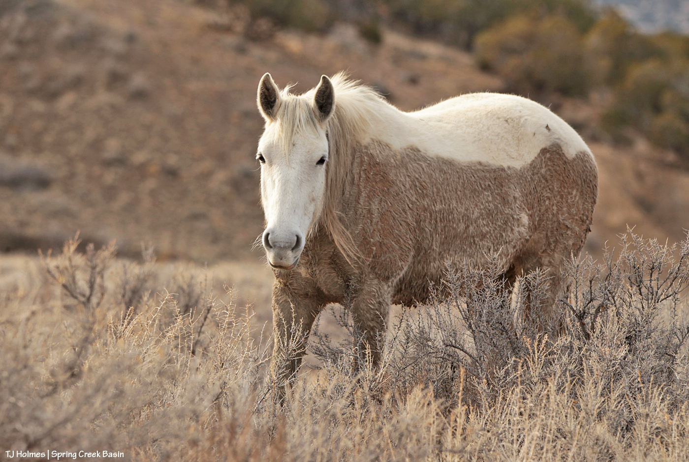 Photographed with still-winterized greasewood between us, I’m about to get the one-ear treatment from Winona, too, as she considers her options for moseying on or staying where she is. She eventually moseyed on, giving me the head shake in passing. I’ll have a pic of that in a future post.