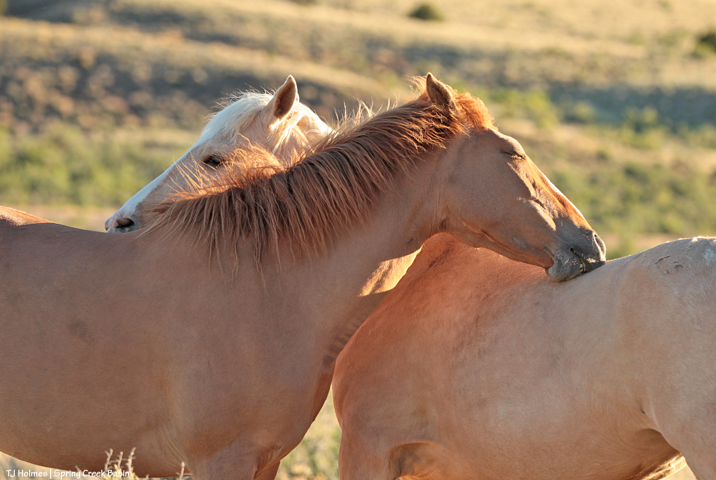 Dundee and Rowan spent several minutes mutually grooming each other on a very quiet, very lovely and very peaceful evening in Spring Creek Basin while their bandmates grazed.