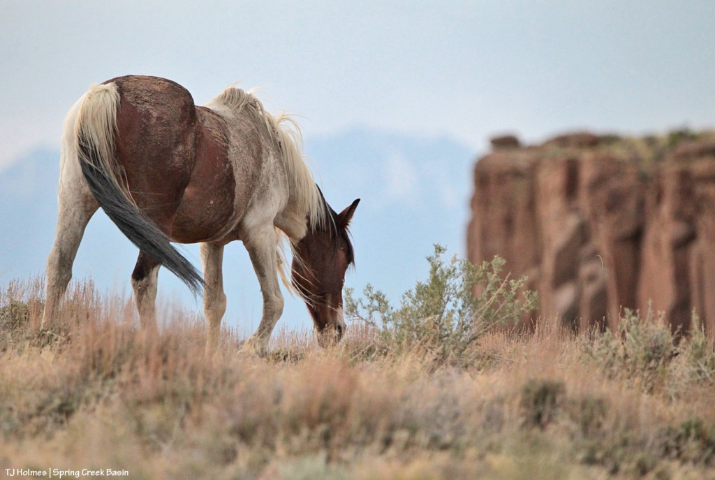 Meanwhile, enjoy a pic of Chipeta moseying along with her band on a windy-dry day above Spring Creek canyon with Utah’s La Sal Mountains dim in the background.