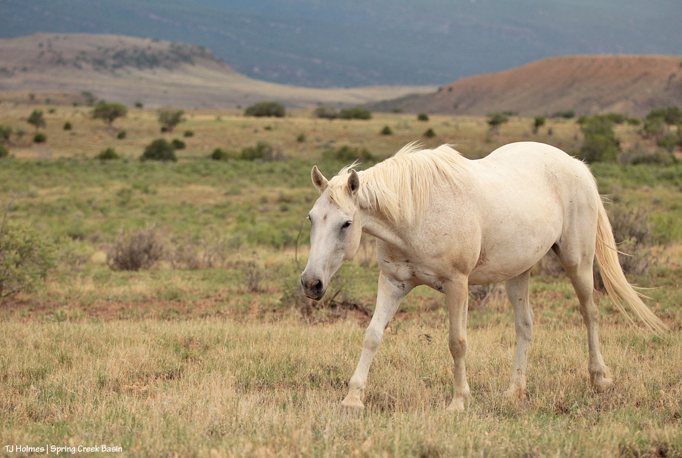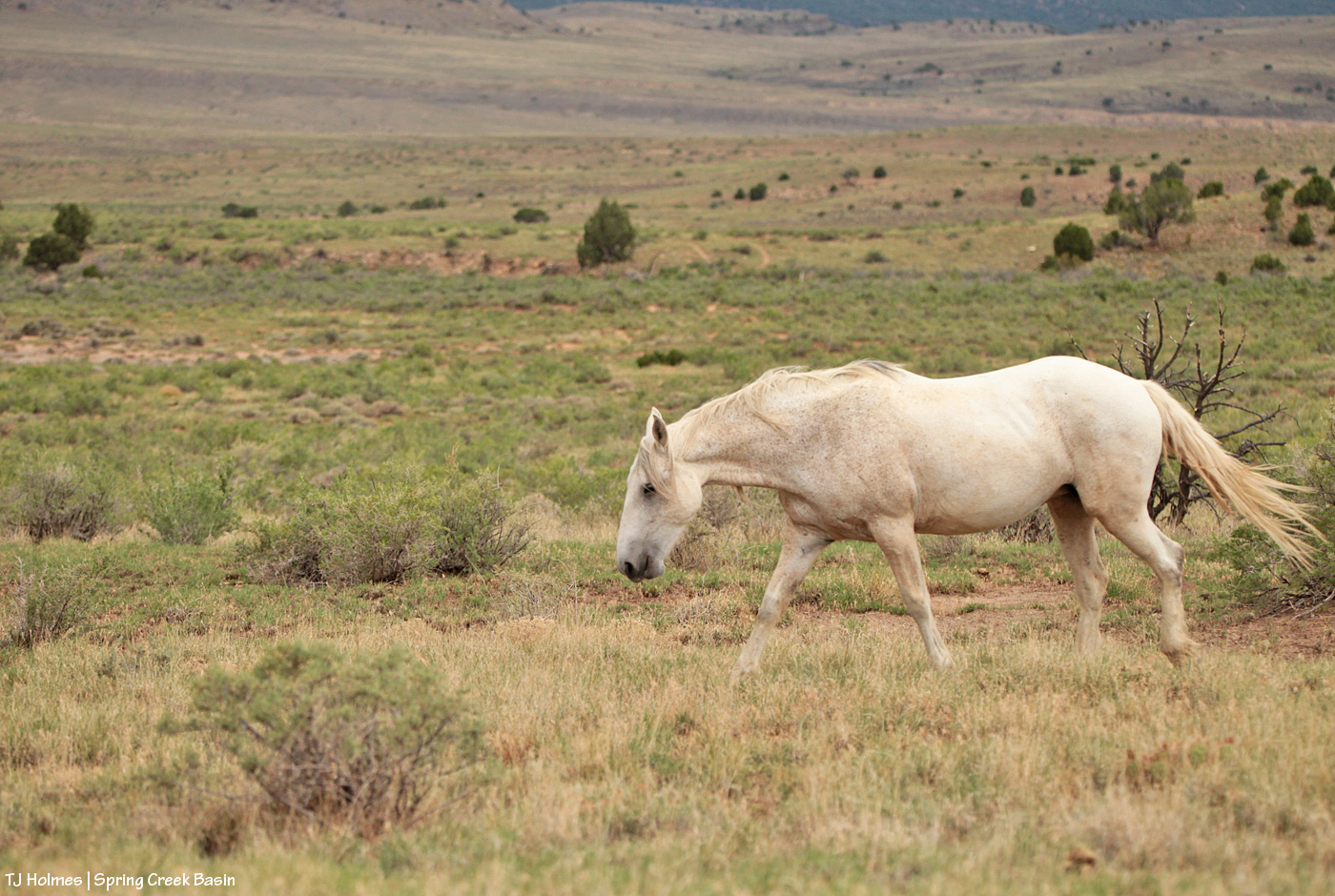 Juniper (above) and Mysterium (below) walk across a landscape transformed – and, literally, greened up – by rain.