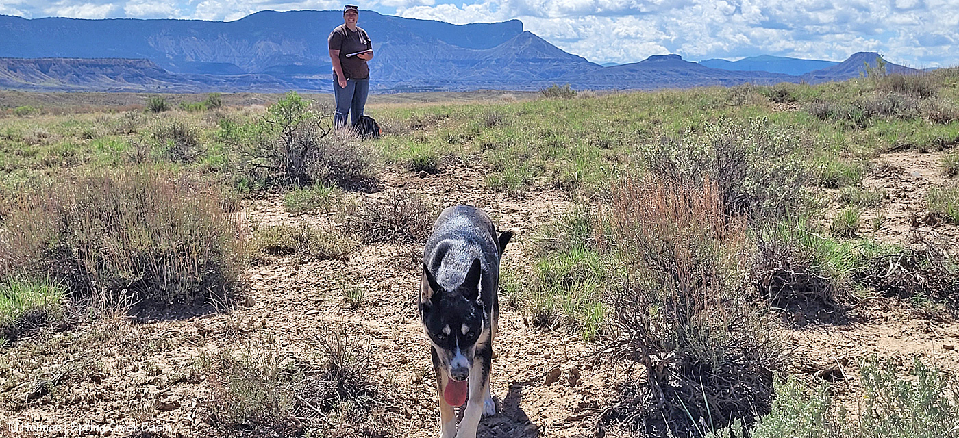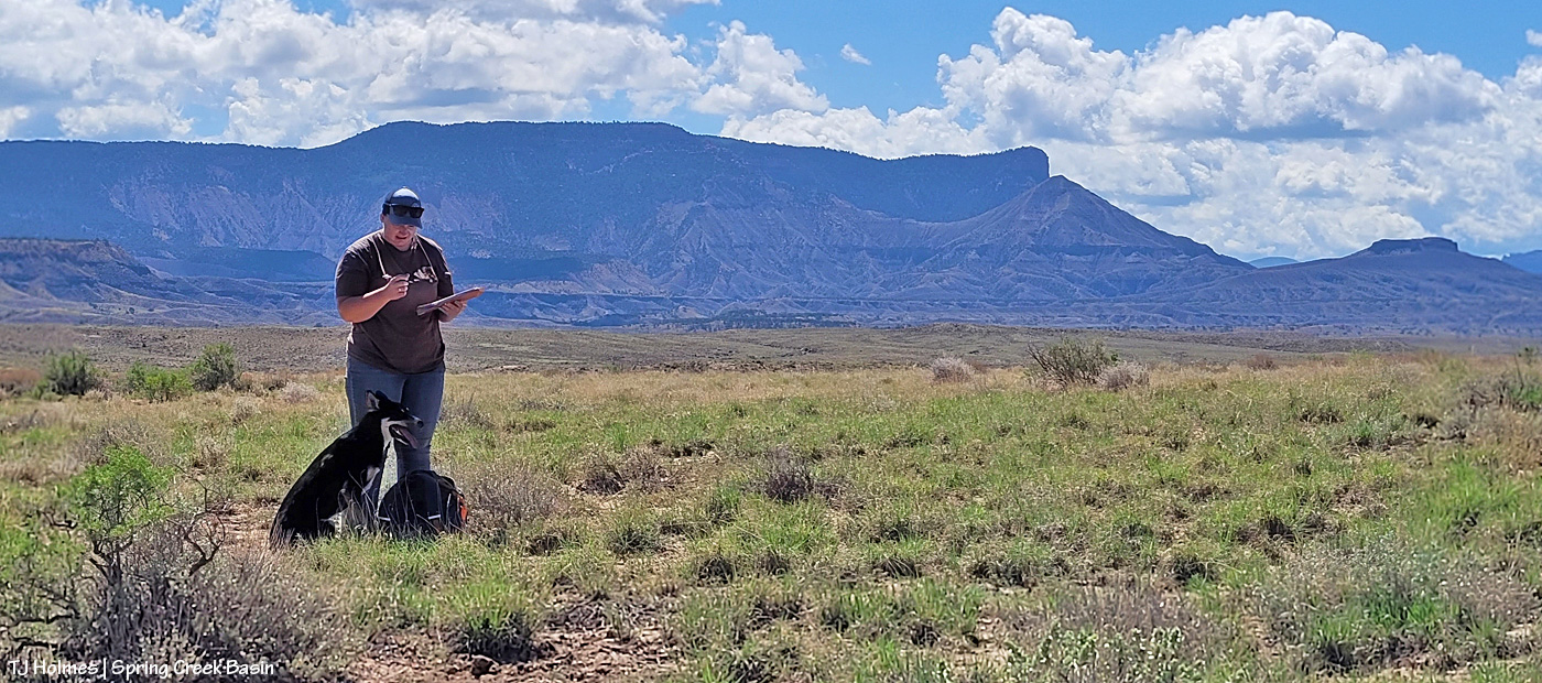 Our BLM range tech, Laura Heaton, was out in Spring Creek Basin last week doing some utilization (of vegetation) monitoring with her lovely assistant, Roo!