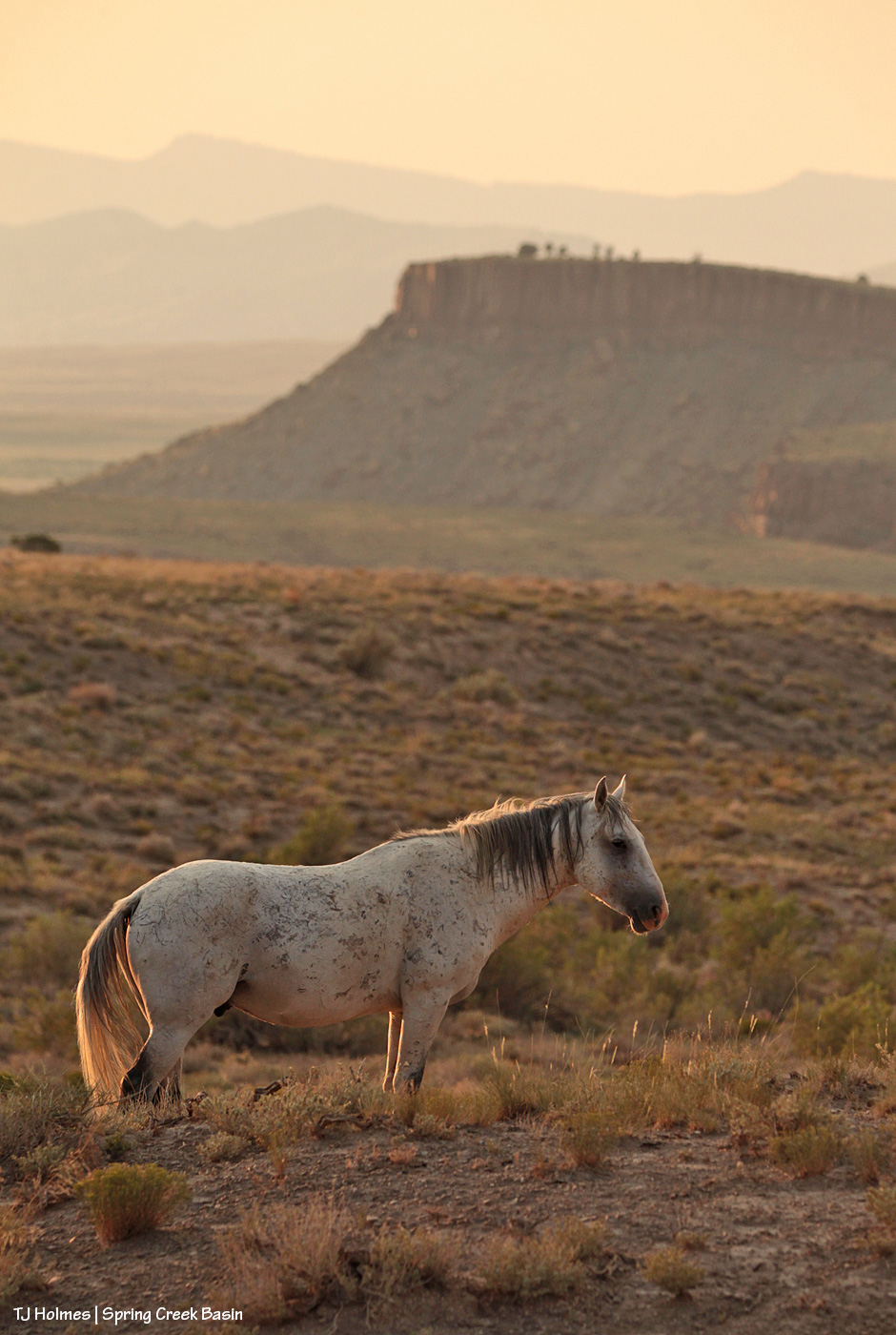 He was waiting around the edges for his turn at the water trough when he struck this handsome pose with Spring Creek canyon’s rimrocks in the background.