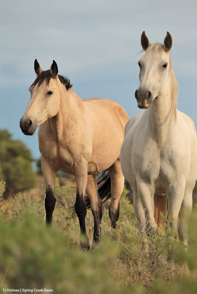 Kestrel and Maia watch the young bachelor approach from an arroyo and a ridge away. They – the whole group of a couple of bands – were intensely interested in the approach of an unknown (I don’t know that he’s *totally* unknown) solo horse. He sure sent them on a not-short runaway mission. I was grateful for the short time I had with them – and the looks of concentration that I almost never witness otherwise!