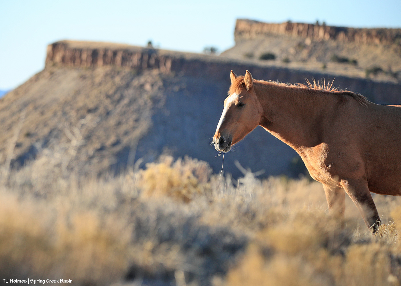 I love this photo, TJ! Iconic rimrock and gorgeous mustang with her spikey mane hairs caught by the sun.