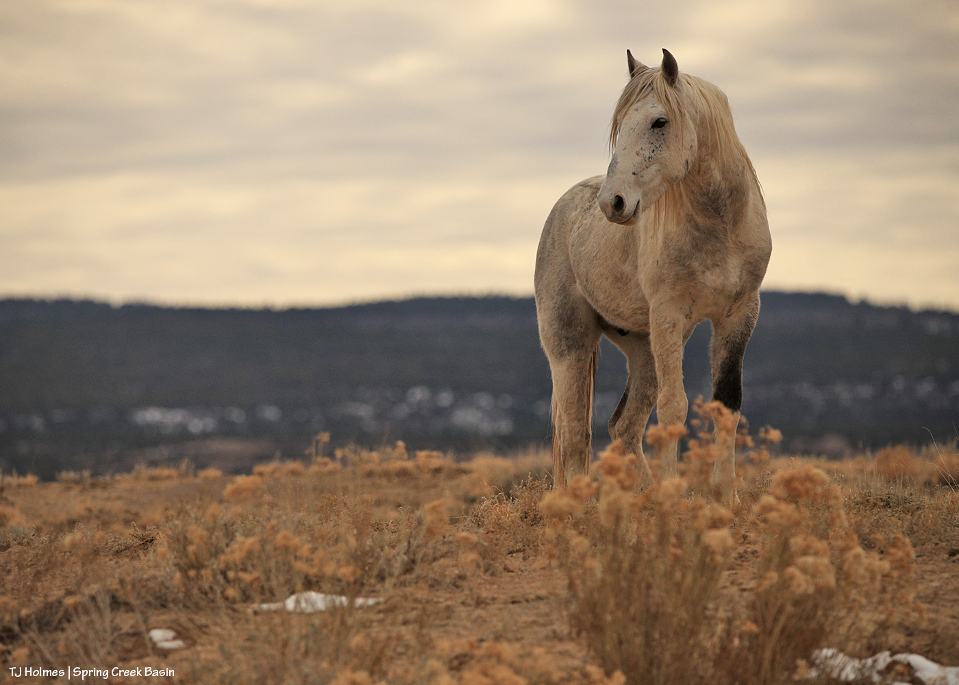 There were a few spots of snow on the ground, still, then. We have a bit of snow in our forecast for tomorrow morning. Clouds were low most of yesterday (a lot like those pictured), and mountains already were getting some to maybe a decent snowfall. Cross your fingers; Flash and his mares and the rest of the herd need some winter moisture!