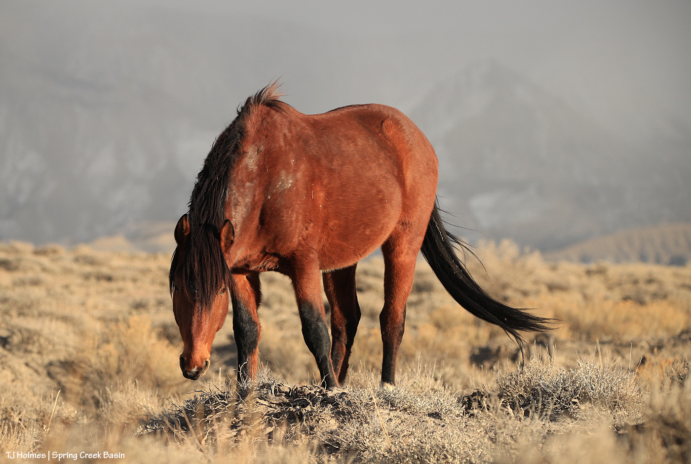 There’s Tenaz, showing off his glorious bay coat in all its winter fuzziness again. 🙂 Windy and cold, but the mustangs don’t seem to mind a bit.