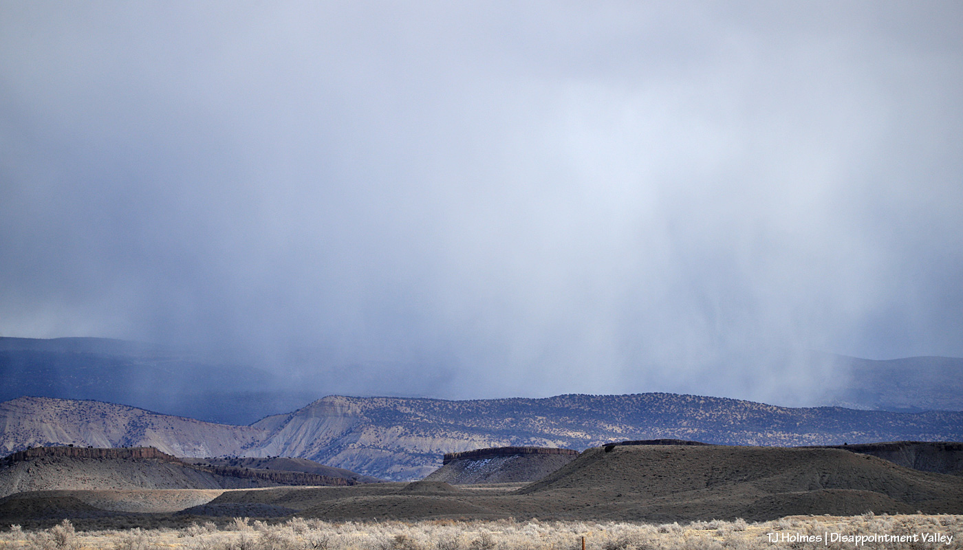 The cold front announced its arrival in Disappointment Valley yesterday morning with wind and dramatic skies. Utah’s La Sal Mountains were blocked from sight by a snow squall in/over western Disappointment Valley most of the afternoon.