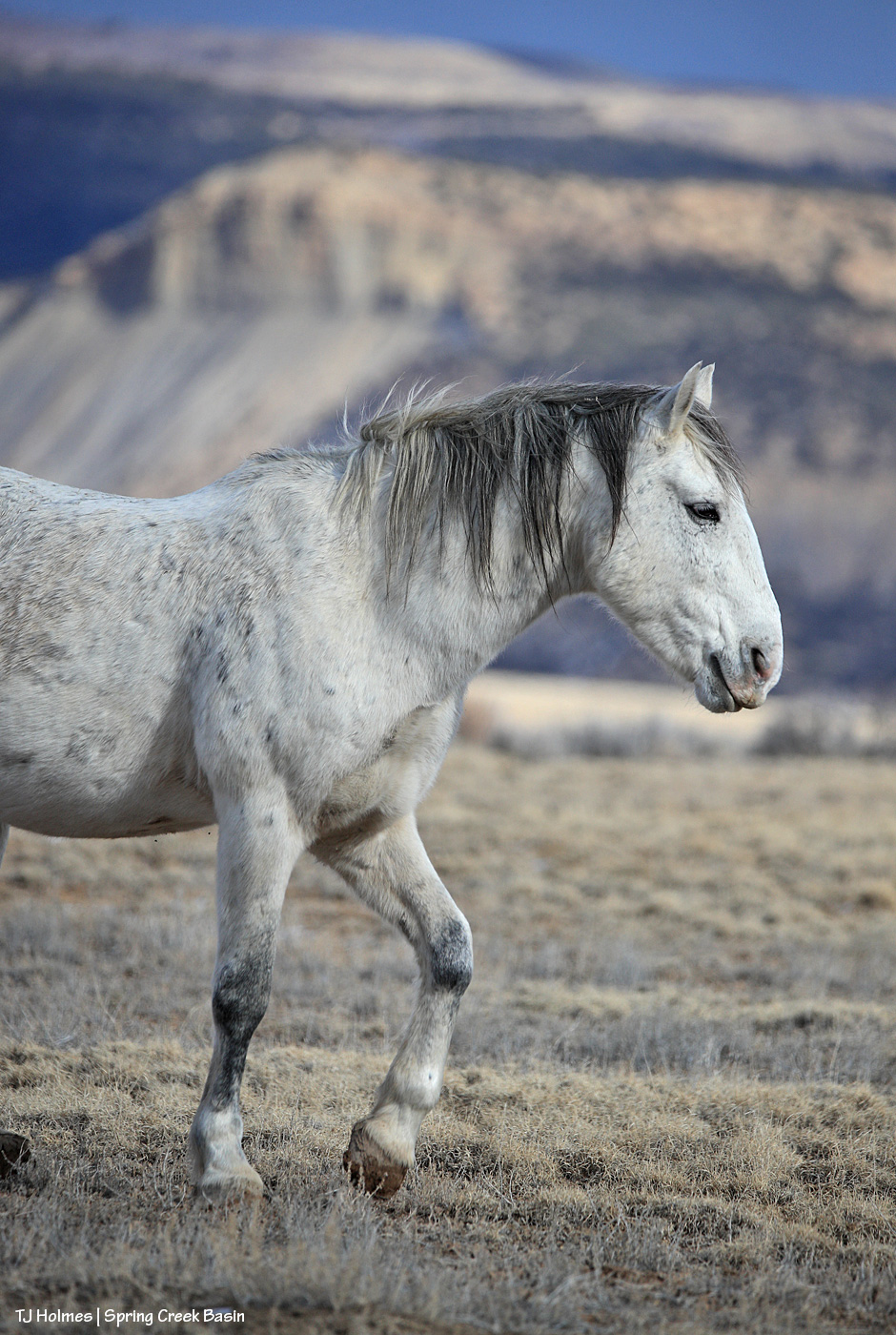Skywalker was named by good friends and long-time mustang advocates Pat and Frank A. (and maybe some other Four Corners Back Country Horsemen members?). I’m not entirely sure how they decided on it for his name; maybe they’re fans of the Force?! We found Skywalker as a brand-new black-and-white foal during the annual foal count that year, and I asked them to name him. 🙂