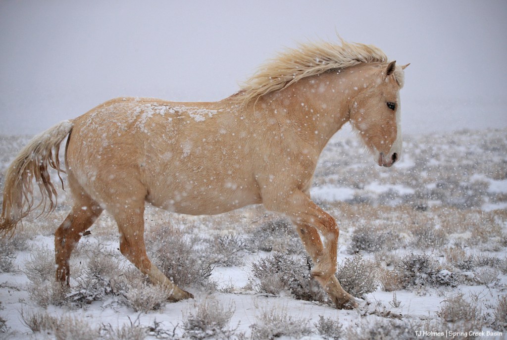 I was in about the center of Spring Creek Basin, and the snow was coming from the eastish/southeastish for probably two hours, and I was despairing of it ever getting really to us (“us” being a form of the royal we, meaning the horses β and me in their midst). At precisely 2:45 (I turned my phone on to look), the leading snowflakes started flying with the wind that had started pushing maybe 15 or so minutes earlier.