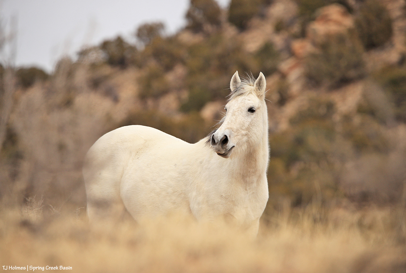 After a few calls back and forth (I’d love to be able to translate, but I imagine the conversation went something like this: “Where are you?” “We’re here!” “I don’t see you!” “I don’t see you, either!” “Come here!” “You come here!”), Temple and her pals (which included the band stallion) joined their lieutenant and followed him to the rest of the band, where I later found them (after I visited with another nearby band), all together and content. π