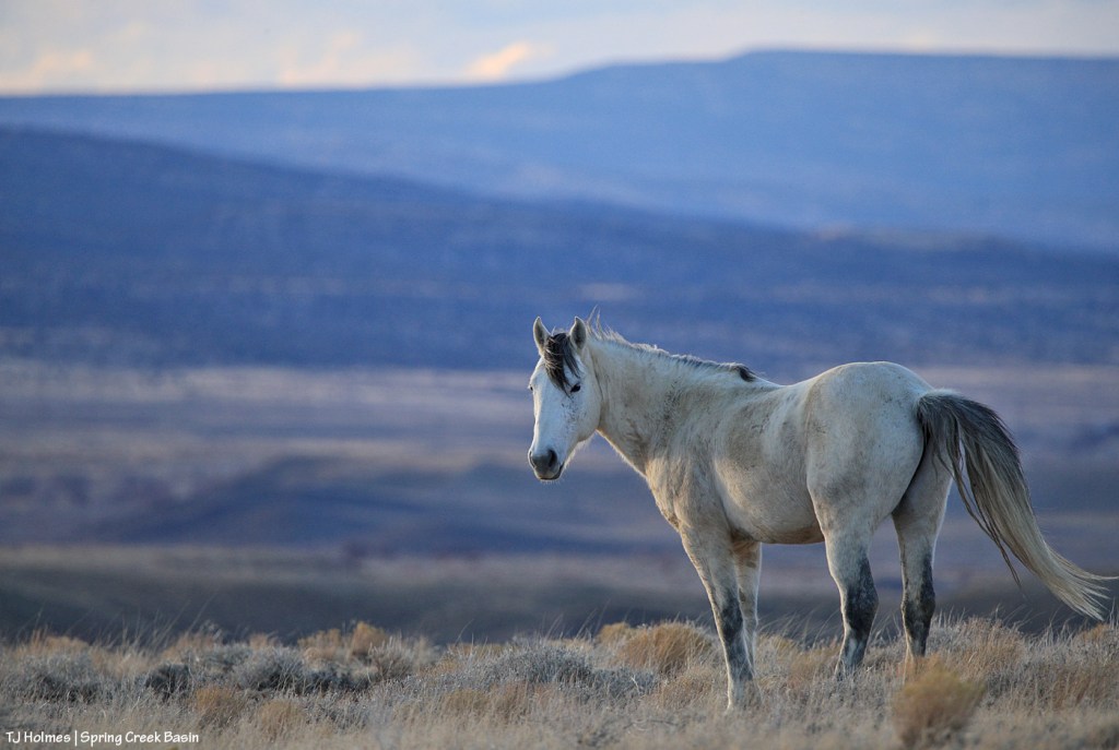 On another windy evening, Buckeye gives a last look to his rival – up the hill and across an arroyo – before he follows his girls on down the hill for a peaceful evening of grazing under the last light across Spring Creek Basin.