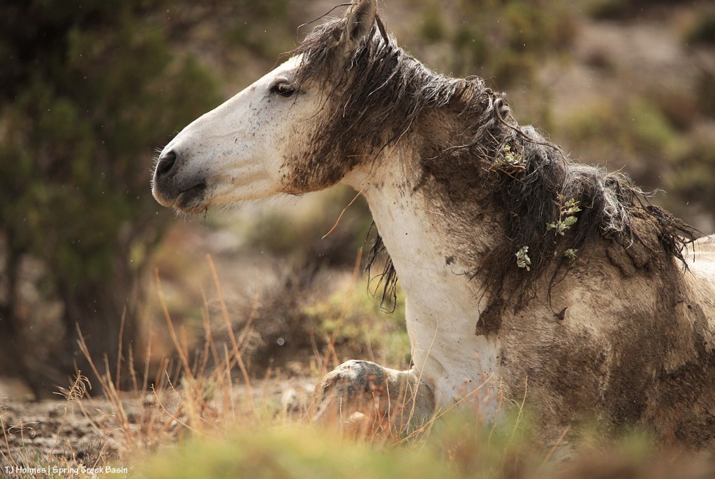 I bet it feels good to wiggle and wriggle in that mud after standing in the rain getting wet! 🙂