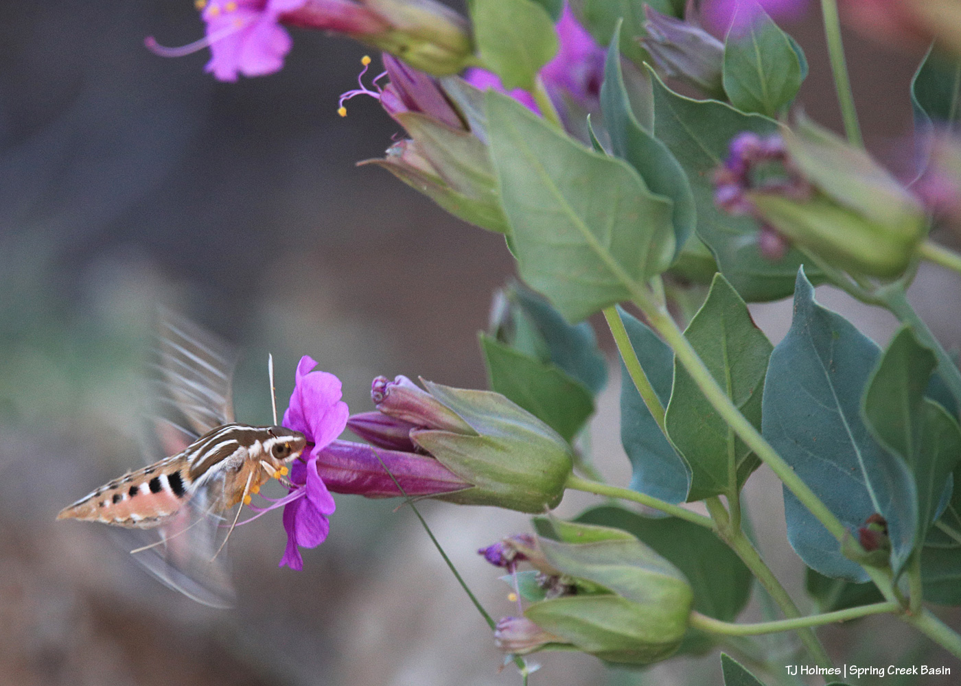 Those are Sphynx moths, and what great photos, TJ! I used to “raise” these when I was a kid. My mom would find the huge caterpillars on her four o’clocks and I would keep them in a more “controlled environment,” feeding them leaves and providing dirt and water. They would eventually bury themselves in the dirt and build cacoons; all would be quiet for awhile…until suddenly there would be fluttering in the container where they were living, and we knew. A moth! A beautiful moth. Then I would set them free in the backyard. Thanks for the memories, TJ!