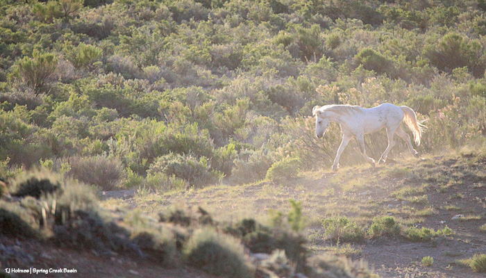 Flash returns to his band after a chat with a neighboring stallion near a water source.