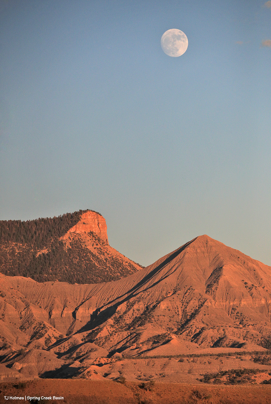 In the basin the night before last, I realized I might be able to catch the moon rising from the space between McKenna Peak and Temple Butte if I could get myself into the right position in Spring Creek Basin.