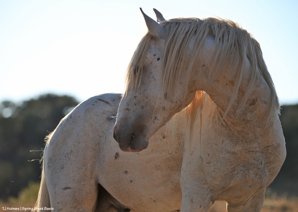The softer side of Flash; he’s checking on his mares, who were scanning the land below the hill where they were grazing. He’s quick to protect when needed, but in a lot of cases, he lets them do the scanning while he concentrates on his groceries.