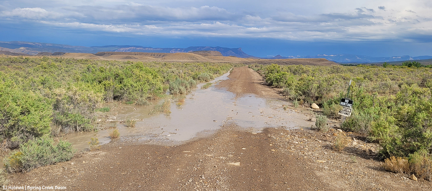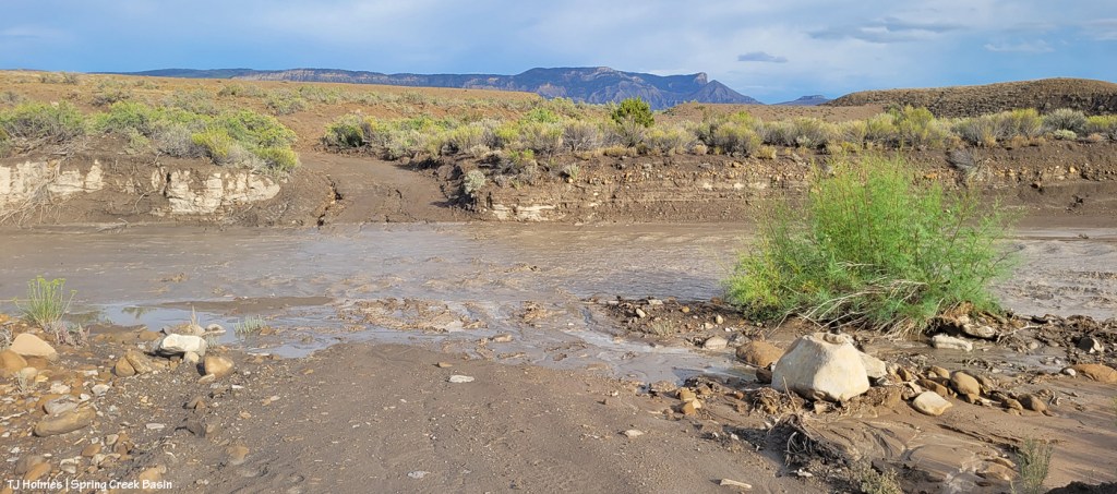 We had a number of these last year. This year, not so much. … ALWAYS fabulous to see water running across the first (as you come to it) Spring Creek crossing. It was already receding when I reached it in late afternoon, but the water (very muddy) was happily gurgling along.