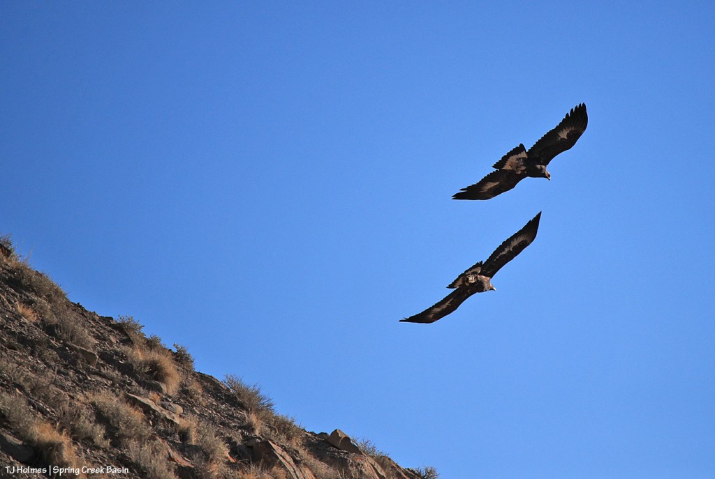 Two of the three eagles I saw were flying (cavorting?!) together above Spring Creek Basin’s western rimrocks. I like to think they came flying overhead to see what the crazy two-legged was doing, and I was glad to see them so close in all their majesty.