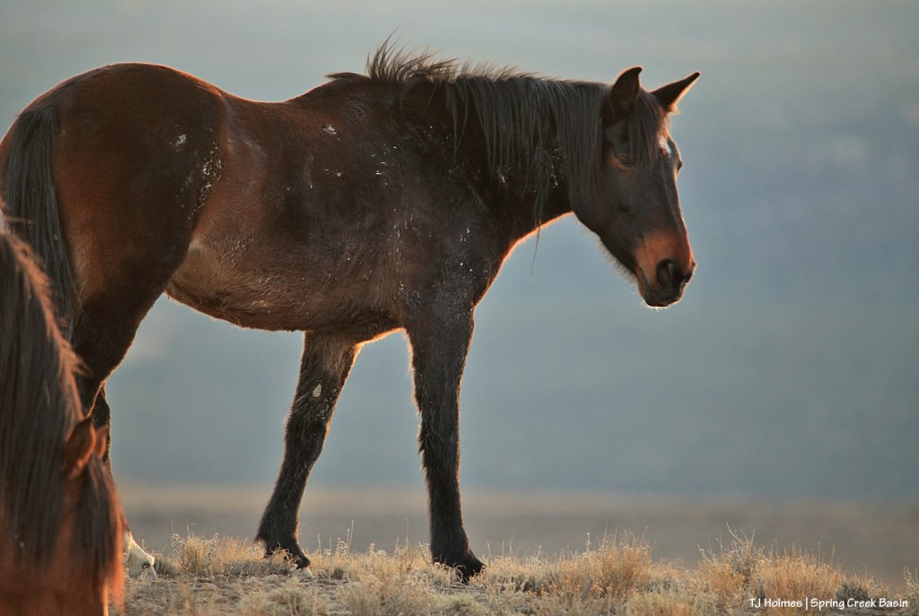 Tall, dark and gorgeous Cassidy Rain is ready for winter in her velvet winter coat, grazing along with her band.