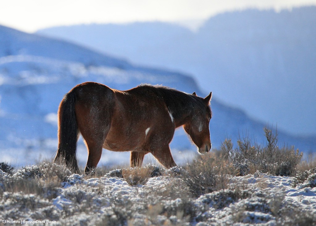 (Note: At this point, the snow has been gone for several days, but I wanted to post a few mustang images taking advantage of the little snow we had! After this morning, though, the blog will return to current conditions, which is to say, NO snow.)