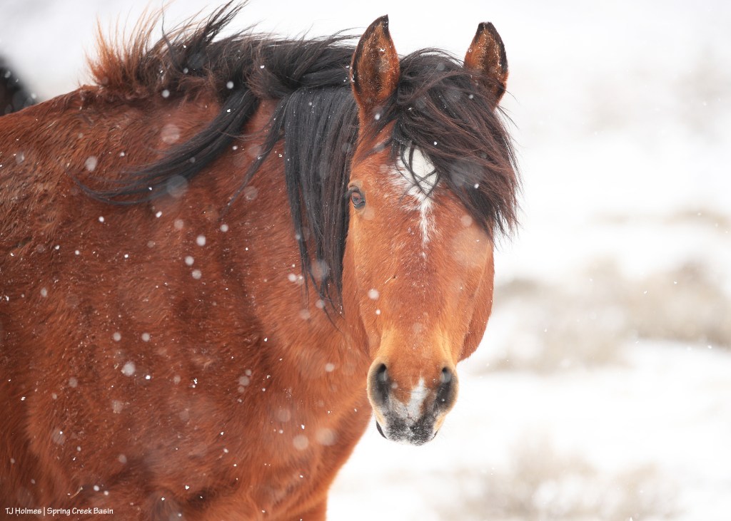 Tenaz is the handsomeness amid the drifting flakes and white. What a great photo, TJ!