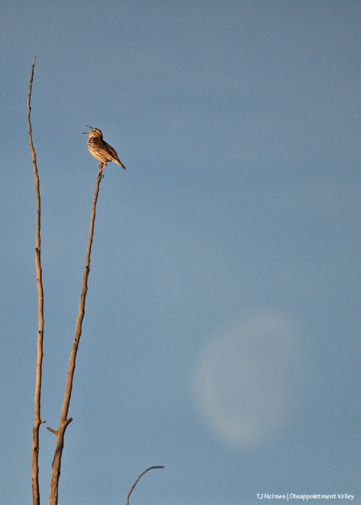 This meadowlark was singing his heart out as the moon set in the southwestern sky Monday morning.
