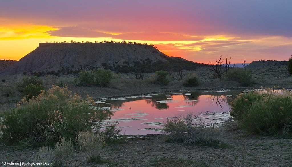 I’ve been looking for a particular band for about a week now. They showed up … then they disappeared again. That’s not unusual; even in only-22,000-acre Spring Creek Basin, there are lots of places for the ponies to roam out of sight of human eyes (and given the high ATV/UTV activity lately, including terrible, destructive off-road behavior, much better for them). But I was curious: Were they going south and taking advantage of the pond below/south of Round Top … or were they going deep east and taking advantage of the east-pocket pond? I’d seen water glinting in the RT pond a couple of weeks ago, but because of the very rough road and lack of loop access (because of bad washouts), I don’t often go back as far as the east pocket anymore (which is too bad because it’s one of my favorite areas of the basin).