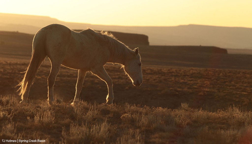 As you would expect from the photographer who published Colorado’s Wild Horses, there’s a section in this book about mustangs, which includes images from Spring Creek Basin, including the above gorgeous scene. 🙂
