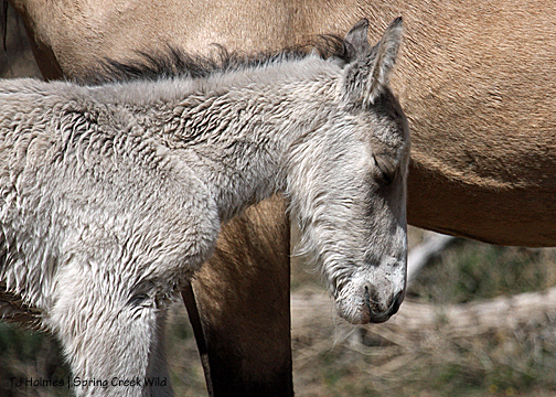 Sleepy girl. Everybody was quiet. Bounce’s band had grazed away around a hill … bachelor Mouse had taken up station between them and the band even so … Gideon and Alpha were grazing close to Luna and Aghavni, providing support (and no doubt curious!) … Steeldust and Butch were pretty calm, giving the others space – Butch enough to take advantage of a nearby tree to satisfy an itch through the mud he’d just covered himself with at the pond!