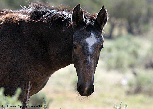 Left to right: Reya (4), Maiku (1), Puzzle (1) and Chipeta. They’re a long way from “home” territory. Chipeta is the dam of the foal that has now been adopted. We don’t know how they got separated. The helicopter pilot was excellent about not even targeting the horses we asked him not to. That’s why he left the bunch alone when he realized they were with the youngest foal. What a story that foal could tell … I’m not even sure who the horses were that were with Chipeta’s band when the pilot did see the group. So all the pintos (and their hangers-on) are accounted for except stallion Corazon.
