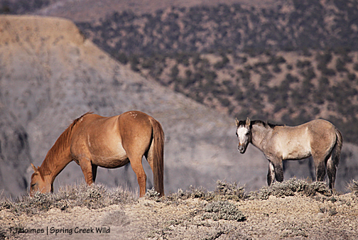 Mostly, Bounce and Tenaz watched the proceedings with interest and only minor (none for Tenaz) participation. Bounce was aged at this roundup at about 15; in 2007, he was aged at 20 (I want to be aged that way!). Tenaz will be 2 this spring; mama is Piedra, and daddy is Hollywood (can you see his resemblance to Hollywood??). No longer with mama and daddy (he went with auntie Baylee last spring when Comanche stole them (and Iya, Cougar and Sage)), he and Baylee ended up with Storm for the rest of the year, and Sage, Iya and Cougar ended up with Poco and Roach – who pretty quickly kicked Sage out (and he ended up with some other young bachelors (including Ze) and sometimes with Duke or Bruiser).
