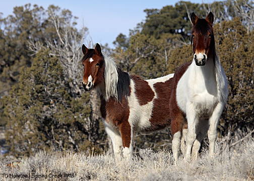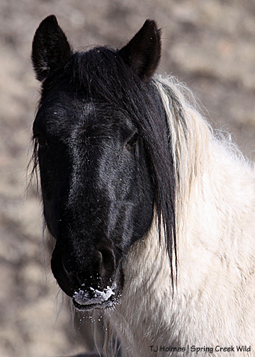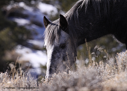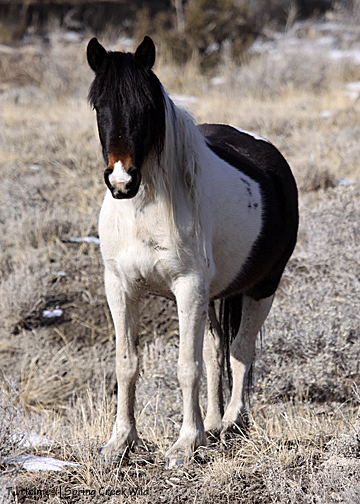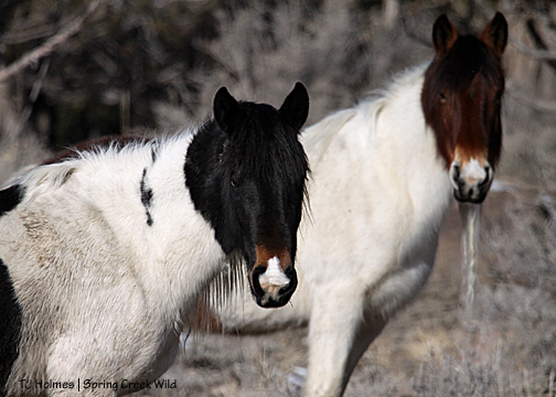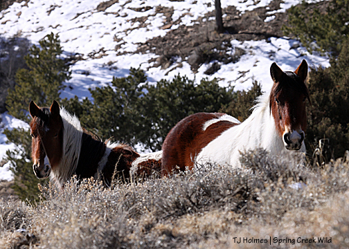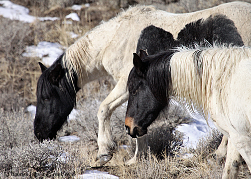 I hadn’t seen hide nor hair of the pintos, and I was just about to drop down into a drainage and walk out … when I spotted Corazon and Chipeta – way back near where I had first seen Copper. Of course. Their tracks – which I followed later – had come out of another drainage. So close … and yet so invisible.