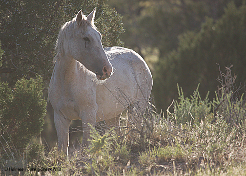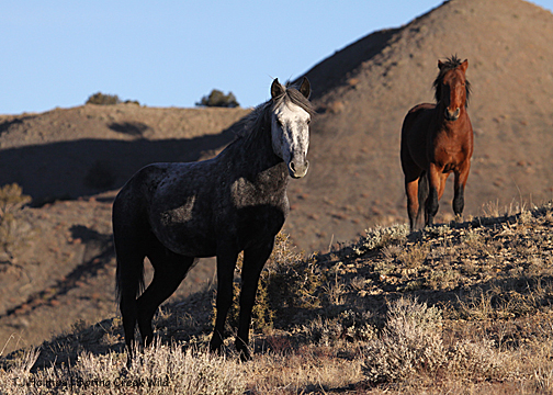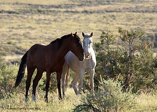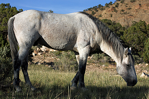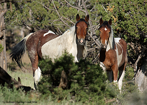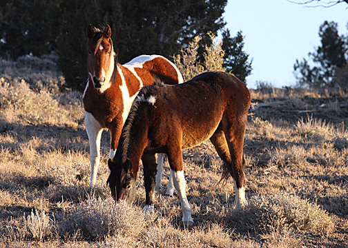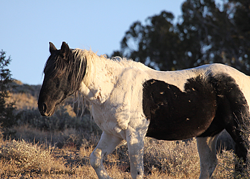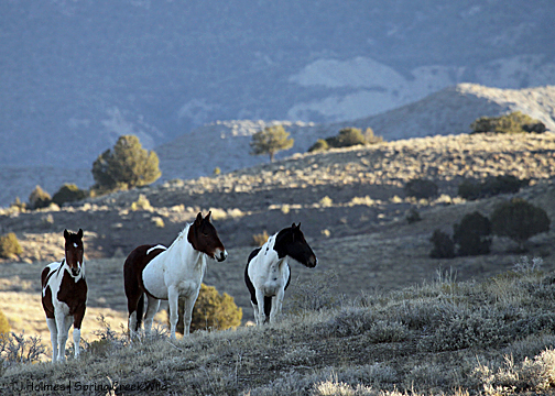 I hadn’t seen hide nor hair of the pintos, and I was just about to drop down into a drainage and walk out … when I spotted Corazon and Chipeta – way back near where I had first seen Copper. Of course. Their tracks – which I followed later – had come out of another drainage. So close … and yet so invisible.