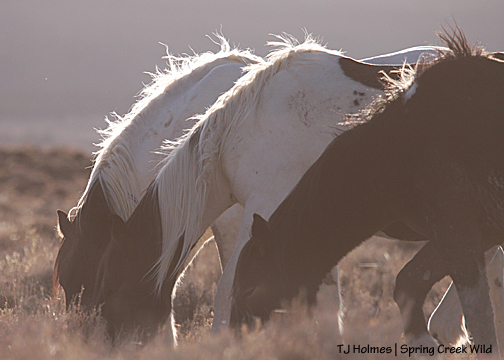 Following the “snowy muzzle” theme, this is Corazon, so named for the heart on his left side. He’s one of two black-and-white pintos in the basin. Raven, originally from Sand Wash Basin, is the other.